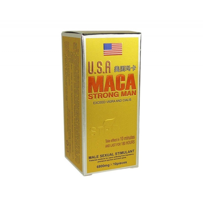 MACA Strong Man е напълно натурален продукт за мъжка потентност, който няма лекарствени съставки. Натрупва популярност в източните държави и се счита за много добър стимулатор на мъжкото либидо. Повечето от веществата на Мака Стронг Ман се употребяват в медицината за лечение на различни неща, но за първи път съчетанието им води до уникален стимулант за ерекция. Подходящ за консумация от мъже със сърдечни проблеми или прекарали инсулт, защото е изцяло билков продукт и без страничен ефект. Може да се приема с терапевтична цел за около два месеца по половин хапче на ден. Подобрява еректилната функция, а получената ерекция трае по-дълго, забавя свършването и увеличава размера на пениса.